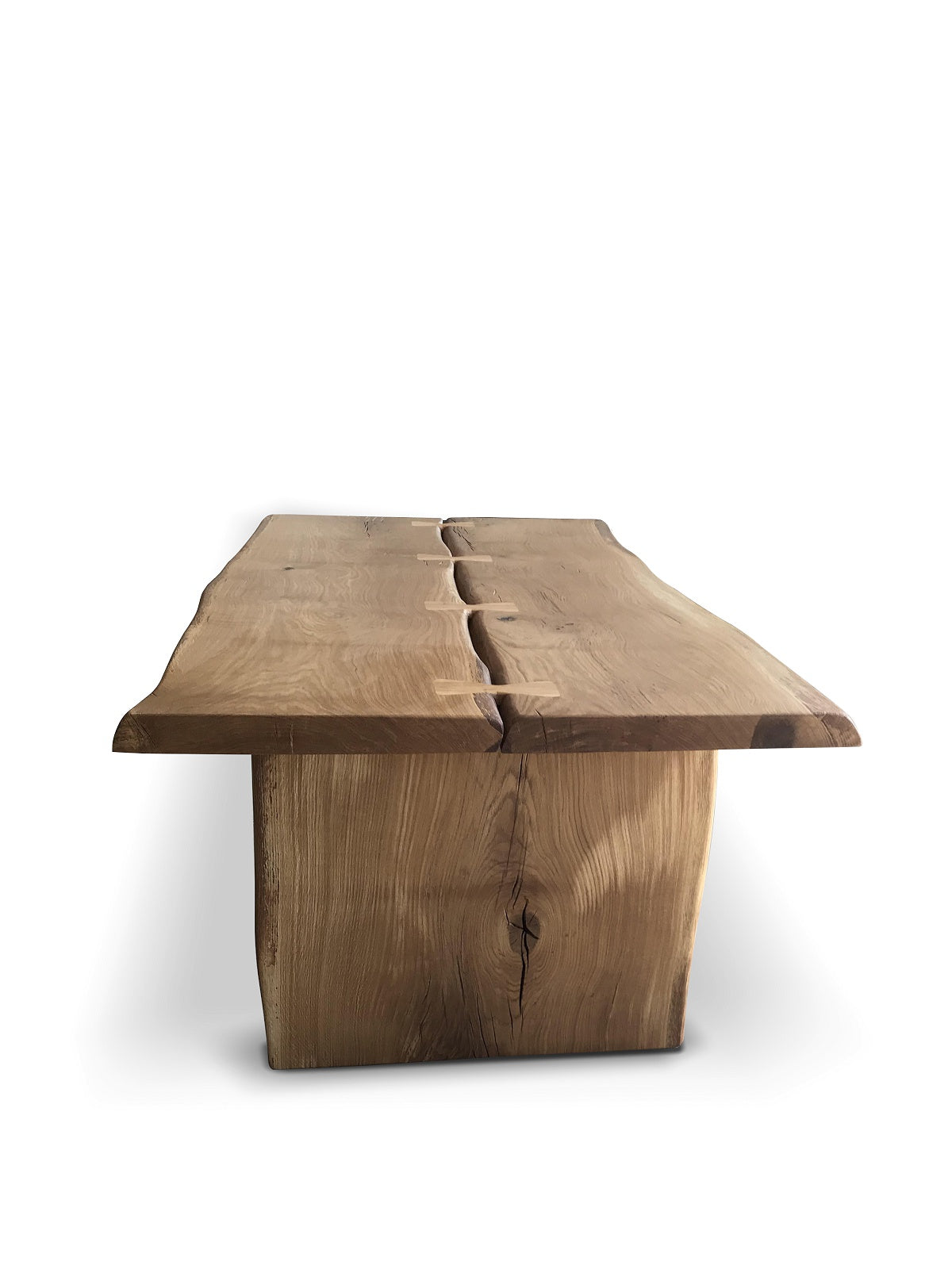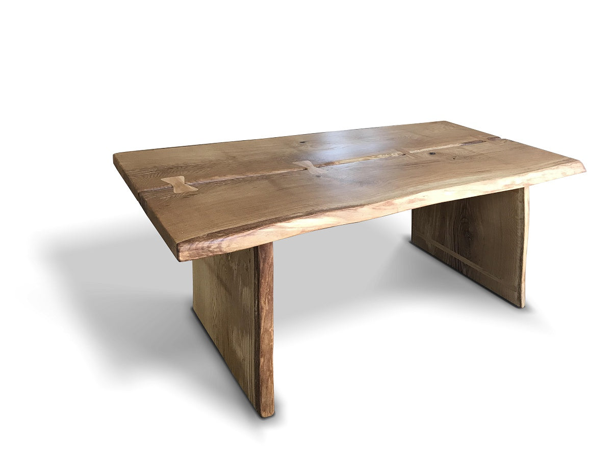 Material blat masă: Lemn masiv de stejar (Calitatea B-C),  cu fisuri si noduri (rustic) cu margini organice